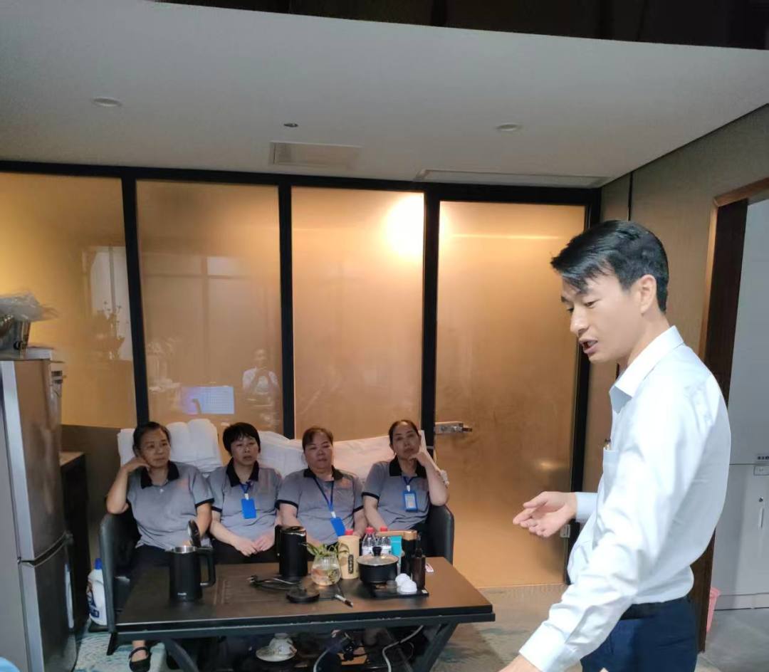 第三季度,为夯实客房服务品质、规范特殊宾客接待流程,椿天酒店围绕日常服务与安全运营核心需求,组织开展4场专项培训,累计19人次参与。